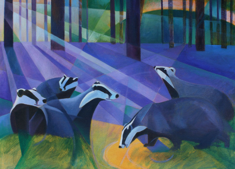 Badgers, Bluebells and Moonlight – a 24 x 18″ acrylic under-painting. This is my second badger painting, the first Badgers and Bluebells sold very quickly and has been very popular so I decided I ought to paint another to help highlight their plight. I wanted to paint the Badgers are night and explore moonlight and shadows through a bluebell wood. This painting will eventually be painted in oil.