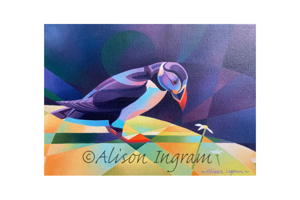 Category: Paintings Tags: abstract bird painting, puffin, puffin paintings, puffins, skomer puffins
